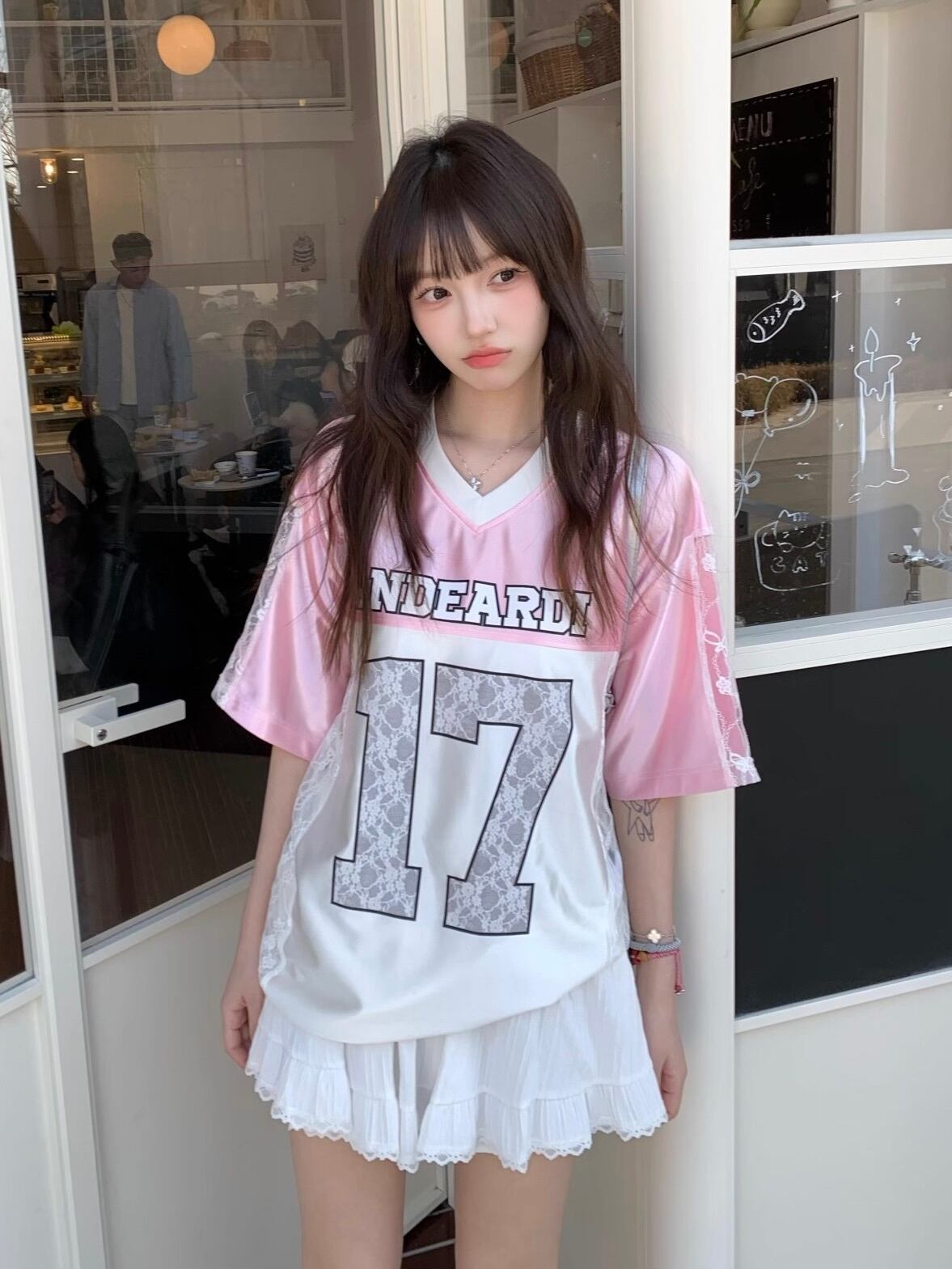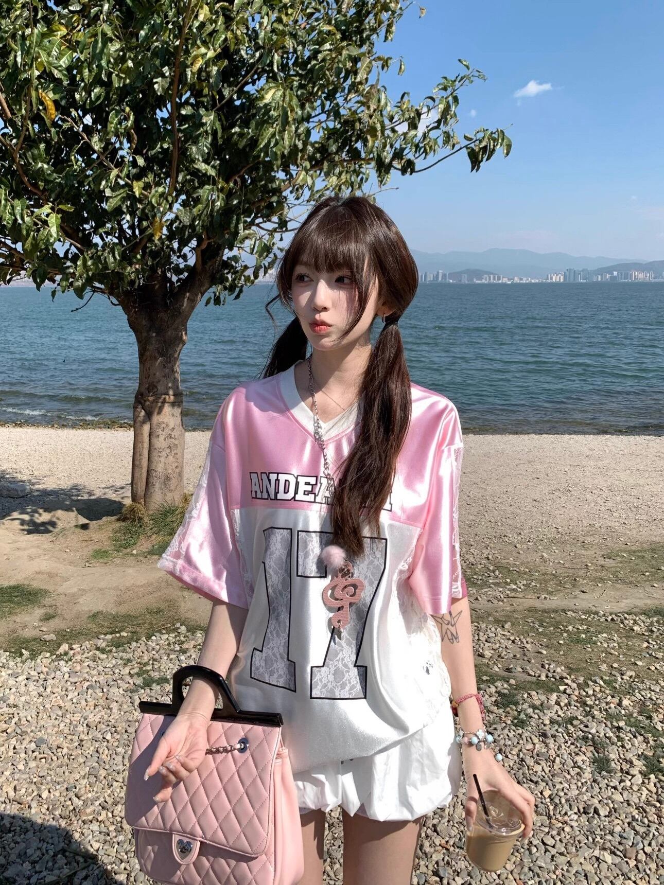 スポーティーに甘さをプラス。Y2Kガーリースタイルの新定番! スポーティーだけど、ガーリーに着こなせる新感覚トップス。 ピンク×ホワイトの配色に、レース模様のナンバリングが映える♡ ビッグシルエットでゆるっと着られるから、ミニスカやフリルボトムと合わせれば、韓国ストリートガールのY2Kコーデが完成。 ワンピ風に着ても、レイヤードしても可愛い、万能トップです。 size:S 着丈70cm バスト108cm 袖丈23cm size:M 着丈72cm バスト112cm 袖丈24cm size:L 着丈74cm バスト116cm 袖丈25cm color:pink ◾︎ 配送期間 約10〜21営業日 ◾︎ LINEお友達追加で¥500 OFFクーポンプレゼント https://lin.ee/50nwlnR ◾︎ 必ず下記ページの「ご利用ガイド」をお読みの上 ご購入をお願いいたします。 https://kyun.official.ec/about