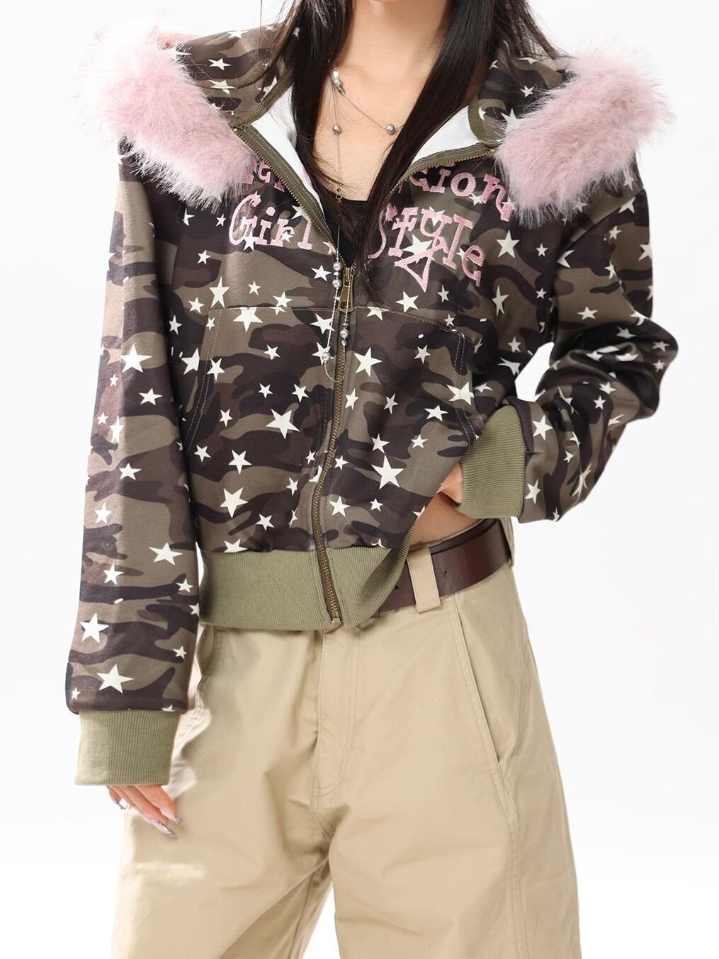 甘さ×ストリート=今っぽY2Kミリタリー 星柄と迷彩の掛け合わせに、ふわふわのピンクファー。 ガーリーとストリートをミックスした、韓国トレンドの決定版! 羽織るだけで“甘辛Y2Kムード”が完成します。 ・星柄×カモフラ柄のY2Kストリートデザイン ・フードのピンクファーがガーリーなアクセント ・ジップアップ仕様で着脱も簡単◎ カーゴパンツで韓国ストリートコーデに プリーツスカート&ロングブーツで甘めY2Kコーデ♡ キャップやチョーカーを合わせてグランジガール風にも 寒い日でもテンション上がる、主役級アウター。 “かわいい”と“かっこいい”を両立したいあなたにぴったり size:S 着丈50cm バスト100cm 袖丈55cm size:M 着丈52cm バスト104cm 袖丈56cm size:L 着丈54cm バスト108cm 袖丈57cm ◾︎ 配送期間 約10〜21営業日 ◾︎ LINEお友達追加で¥500 OFFクーポンプレゼント https://lin.ee/50nwlnR ◾︎ 必ず下記ページの「ご利用ガイド」をお読みの上 ご購入をお願いいたします。 https://kyun.official.ec/about