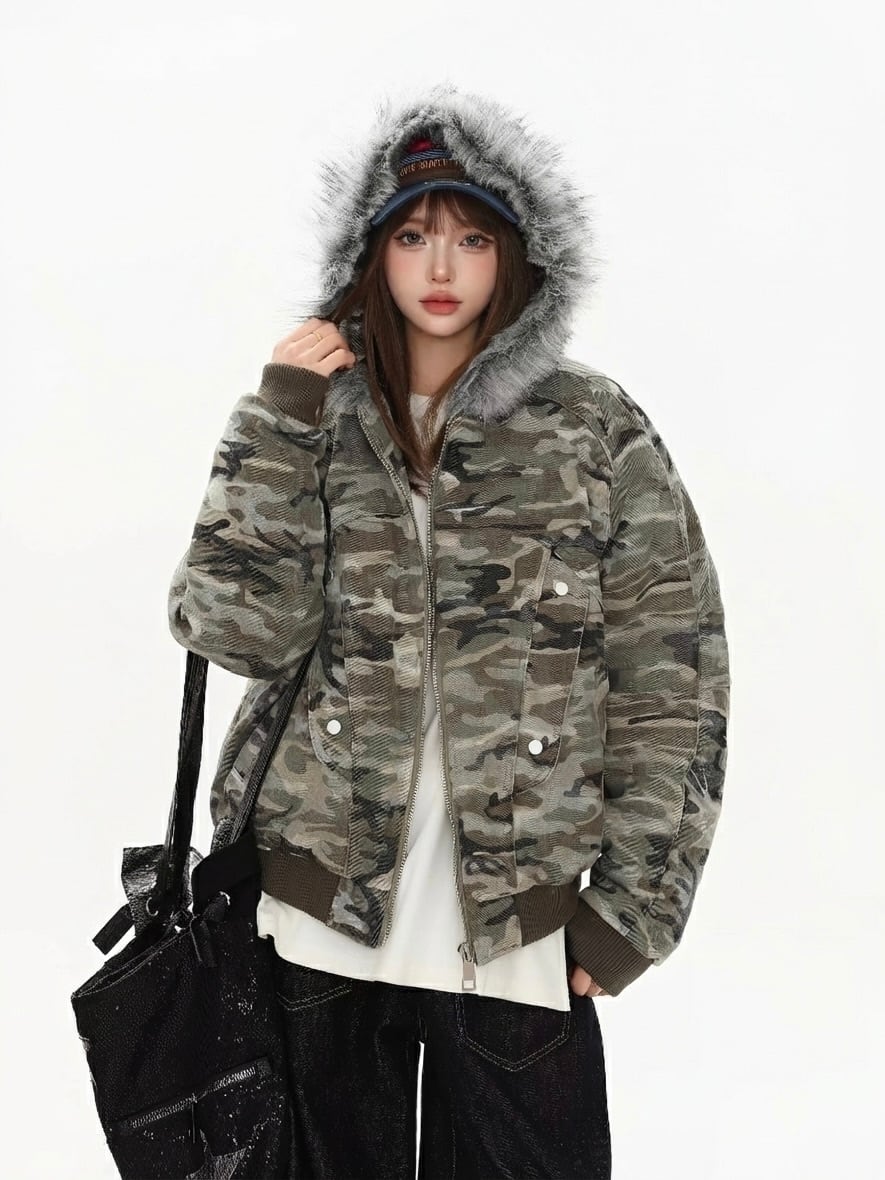 羽織るだけで、ストリートの主役。 ラフなのに、ちゃんと可愛い。 コーデに迷わず一気に“韓国ストリート感”が完成 ショート丈で重たく見えず、スタイルアップ 防寒しながらもゴワつかない、デイリーに使いやすい一着 ・トレンド感のあるカモフラ柄で存在感抜群 ・顔まわりを華やかに見せるファー付きフード ・程よくルーズなシルエットでこなれ感を演出 ・リブ仕様の袖口&裾で冷気を防ぎ、着心地も◎ ・フロントジップ仕様で着脱しやすく、温度調整も簡単 ワイドデニム+厚底スニーカーで王道韓国ストリートコーデに。 ミニスカート+ロングブーツでY2Kミックス。 シンプルな白Tやスウェットに羽織るだけでも即完成コーデに。 ユニセックス感のあるデザインなので、甘めアイテムとのMIXもおすすめです。 size:M 着丈65cm バスト140cm 肩袖丈82cm size:L 着丈67cm バスト144cm 肩袖丈84cm size:XL 着丈69cm バスト148cm 肩袖丈86cm ◾︎ 配送期間 約10〜21営業日 ◾︎ LINEお友達追加で¥500 OFFクーポンプレゼント https://lin.ee/50nwlnR ◾︎ 必ず下記ページの「ご利用ガイド」をお読みの上 ご購入をお願いいたします。 https://kyun.official.ec/about