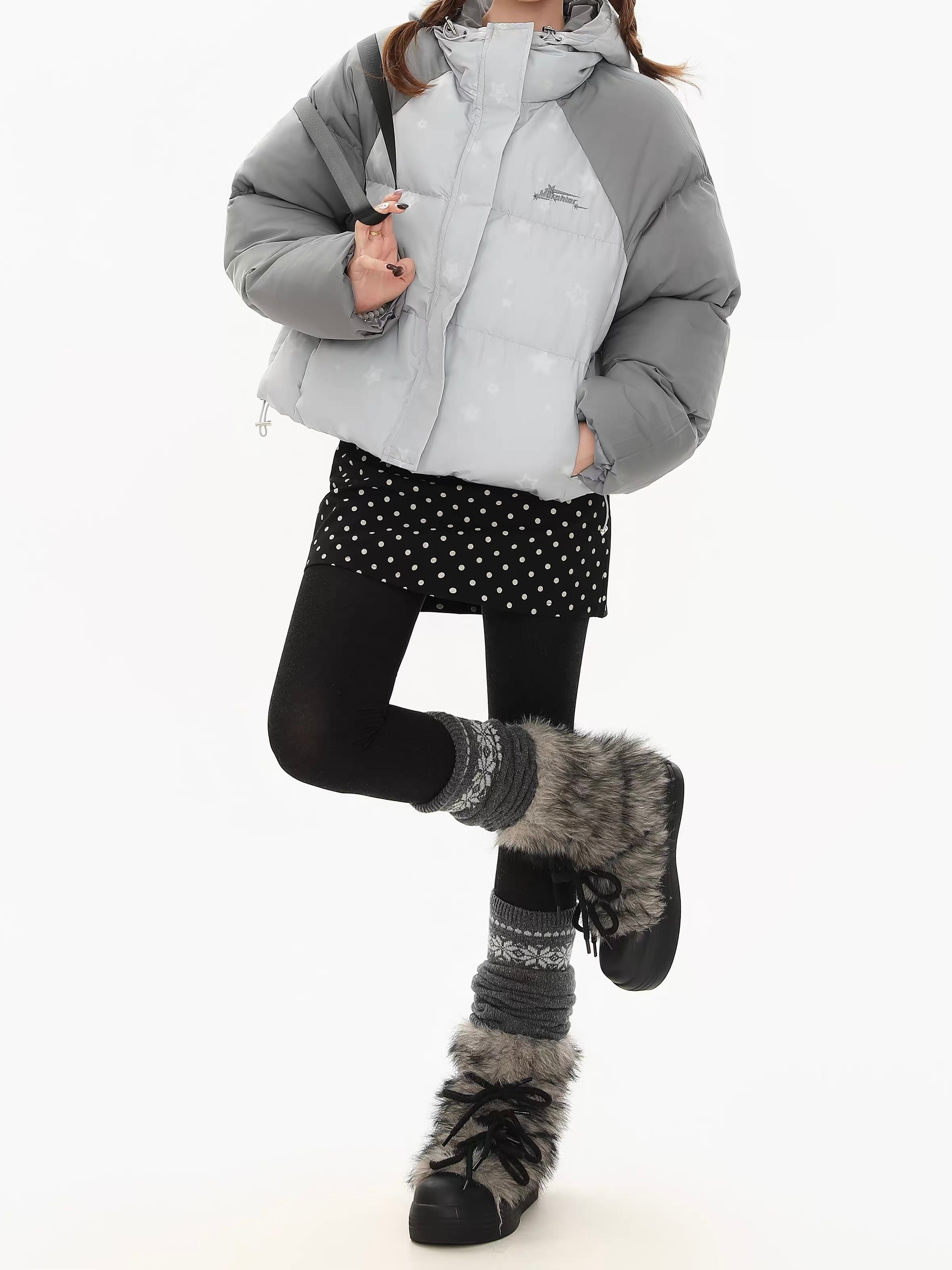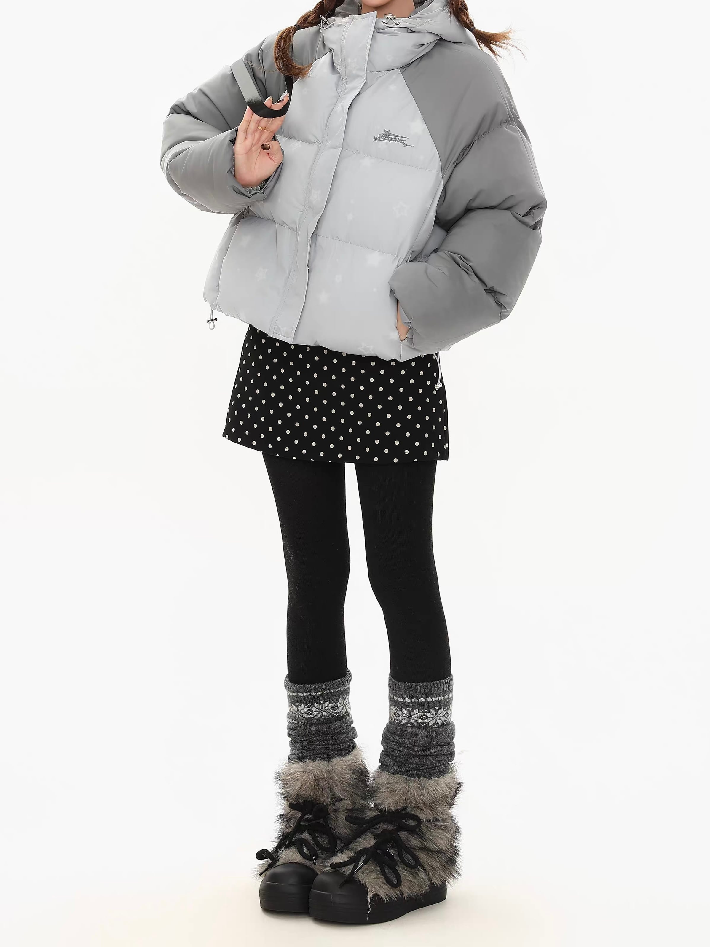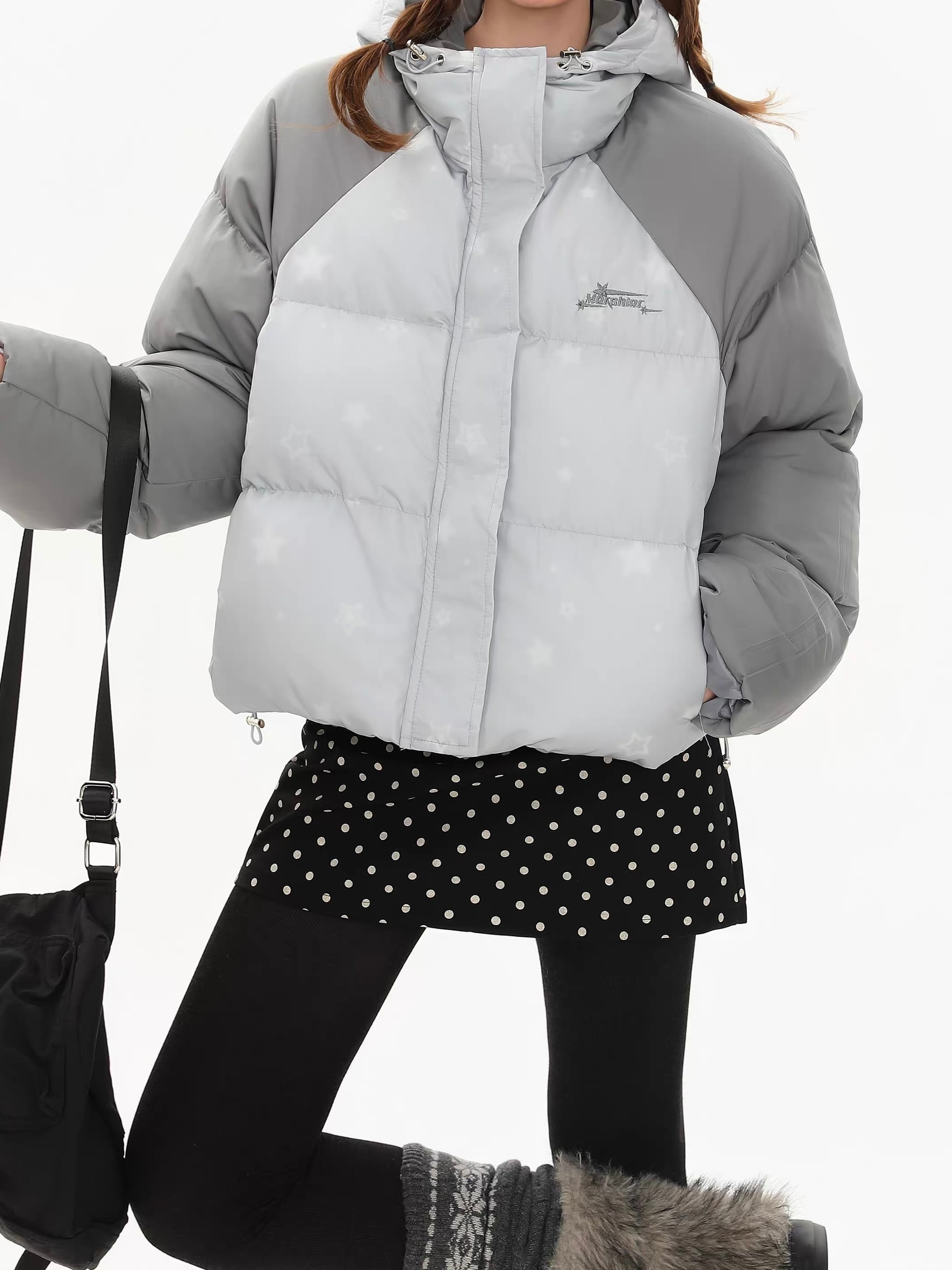 甘すぎない、でもちゃんと可愛い。 韓国っぽムードを仕込む冬アウター。 さりげない星柄で周りと被らない ショート丈でスタイルアップが叶う ガーリーにもストリートにも振れる万能デザイン ・淡色ベースに星柄を散りばめた韓国感たっぷりのジャケット ・肩〜袖の配色切替で立体感のあるシルエット ・ボリューム感がありながらショート丈ですっきり見え ・フード付きで首元まで暖かく、防寒性も◎ ドット柄ミニスカート+タイツで韓国ガーリーコーデに。 ワイドデニムやカーゴパンツでY2Kストリートコーデに。 インナーにタートルやハイネックを仕込むと冬感アップ。 size:S 着丈54.5cm バスト128cm 袖丈73cm size:M 着丈56.5cm バスト132cm 袖丈74.5cm size:L 着丈58.5cm バスト136cm 袖丈76cm ◾︎ 配送期間 約10〜21営業日 ◾︎ LINEお友達追加で¥500 OFFクーポンプレゼント https://lin.ee/50nwlnR ◾︎ 必ず下記ページの「ご利用ガイド」をお読みの上 ご購入をお願いいたします。 https://kyun.official.ec/about