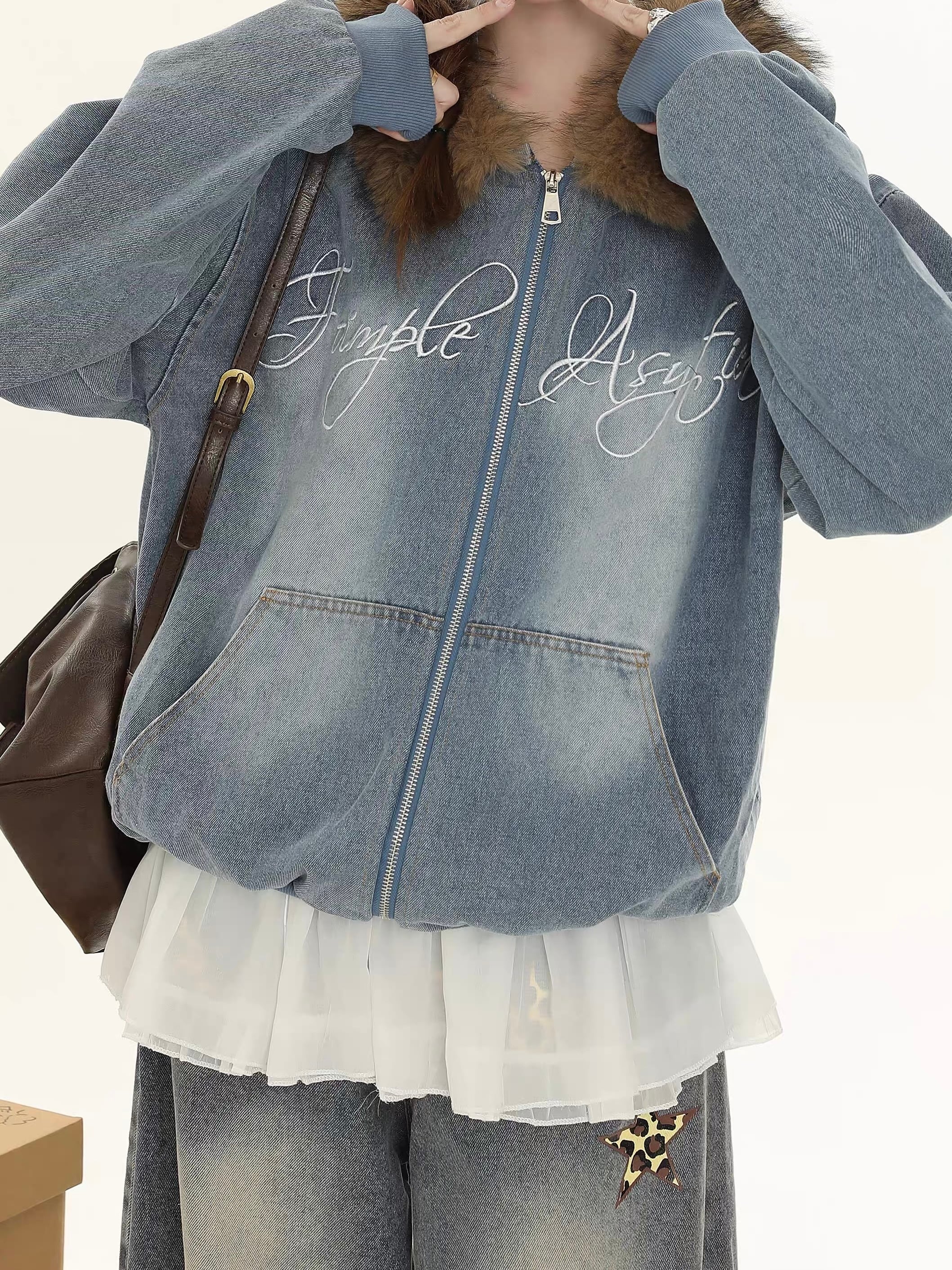 ラフなのに可愛い。 韓国Y2K感を一気に高める主役アウター。 -デニム×ファーで一気にトレンド感アップ -ゆるっとしたシルエットで体型カバー -羽織るだけでコーデが完成する存在感 ・ウォッシュ感のあるデニム素材を使用したジップジャケット ・首元のファーカラーがガーリーさをプラス ・フロントのロゴ刺繍がY2Kムードを演出 ・オーバーサイズ気味のシルエットで今っぽい着こなしに ・フロントジップ仕様で着脱も簡単 ワイドデニムやカーゴパンツでY2Kストリートコーデに。 ミニスカート+ルーズソックスで甘辛ミックスもおすすめです。 size:M 着丈60cm バスト122cm 肩幅59cm 袖丈56cm size:L 着丈62cm バスト126cm 肩幅60cm 袖丈57cm size:XL 着丈64cm バスト130cm 肩幅61cm 袖丈58cm color:blue ◾︎ 配送期間 約10〜21営業日 ◾︎ LINEお友達追加で¥500 OFFクーポンプレゼント https://lin.ee/50nwlnR ◾︎ 必ず下記ページの「ご利用ガイド」をお読みの上 ご購入をお願いいたします。 https://kyun.official.ec/about
