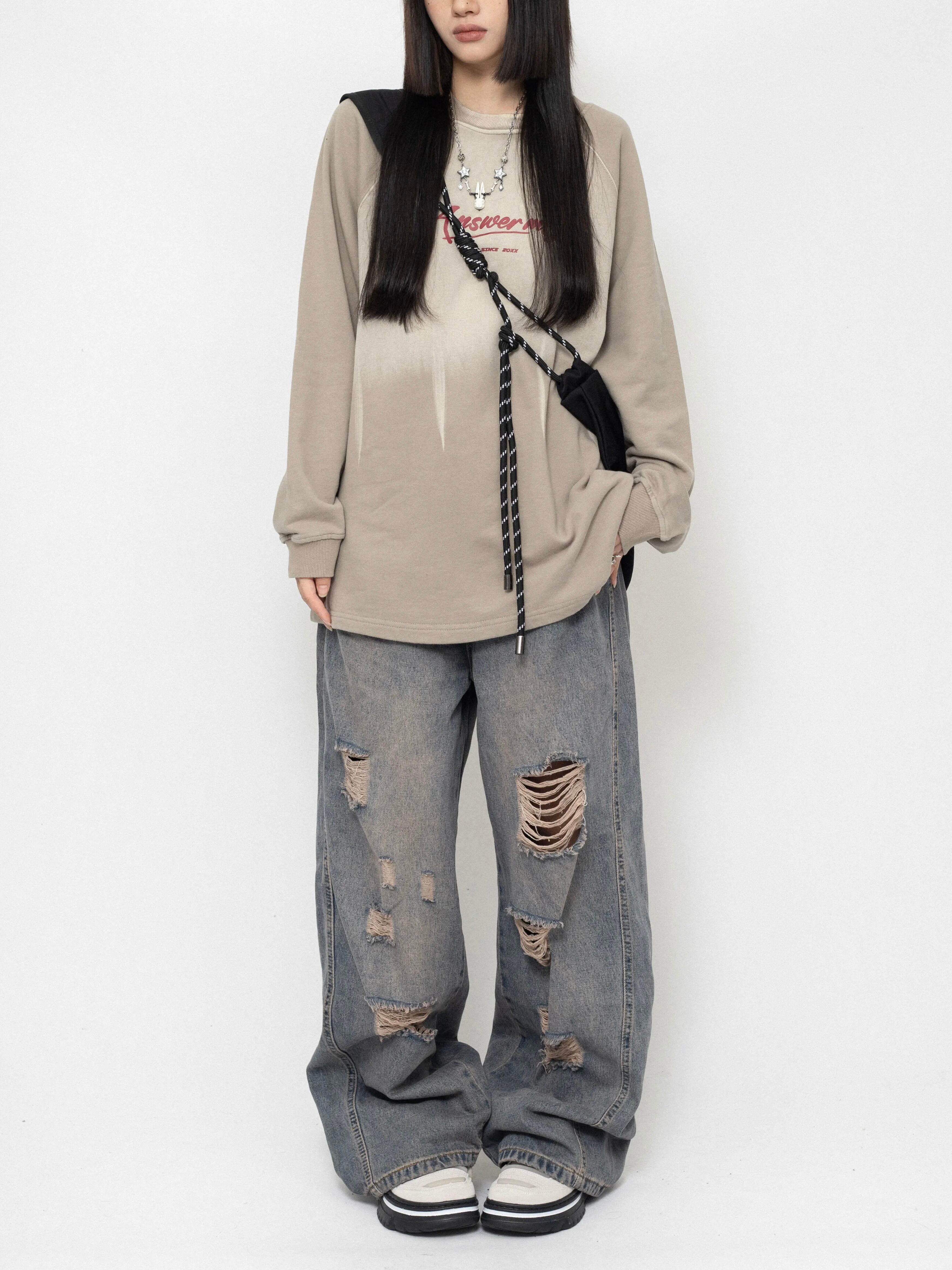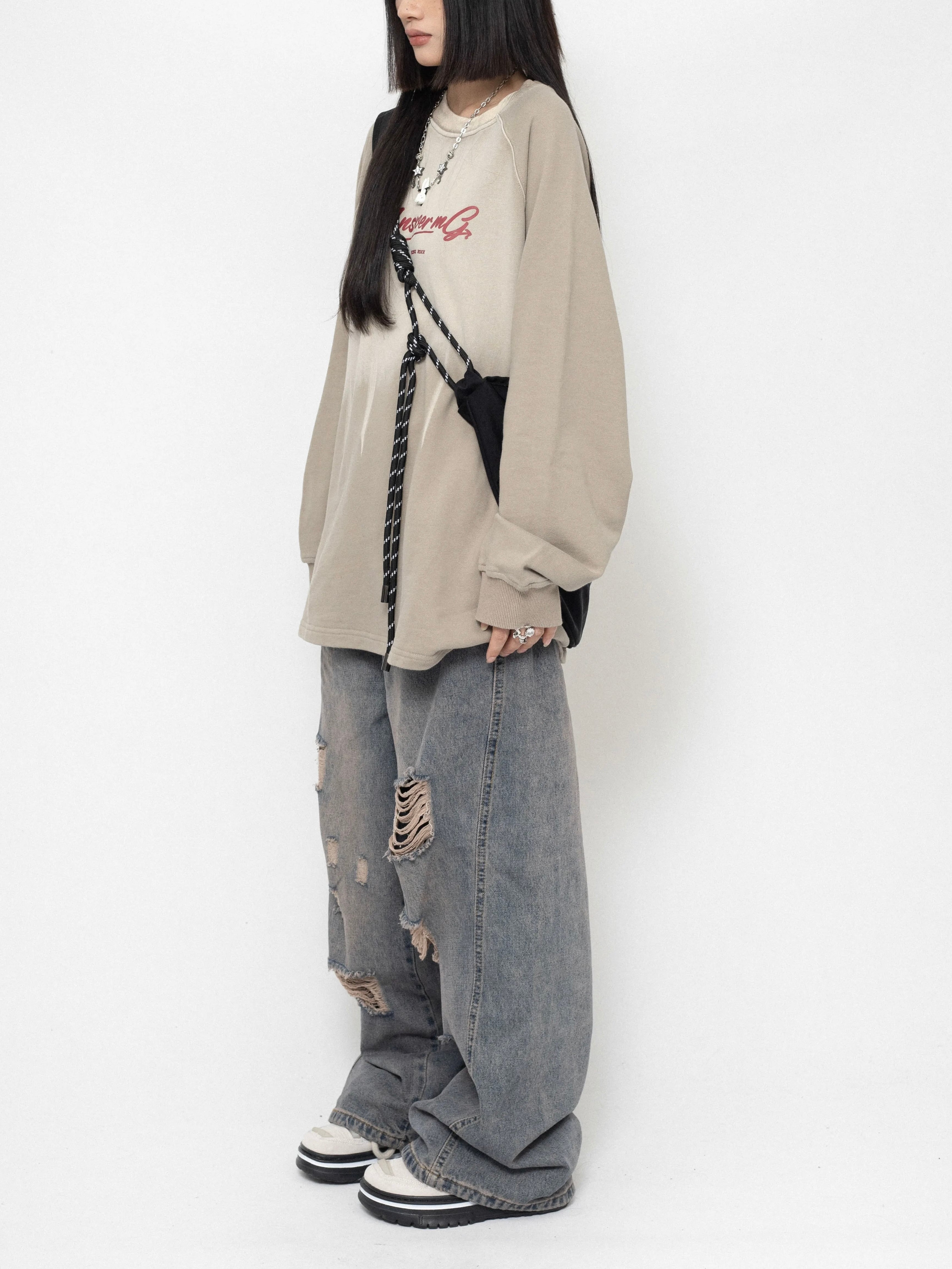 さらにダメージ風プリントが加わり、Y2Kムード漂うエッジの効いた仕上がりに。シンプルすぎない絶妙な存在感で、コーデに自然と奥行きをプラスしてくれます。