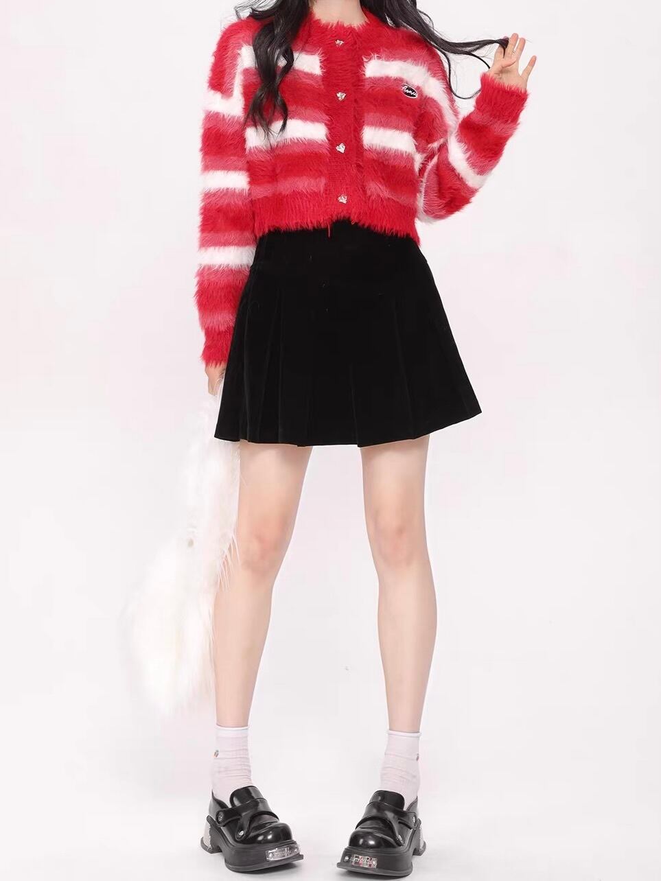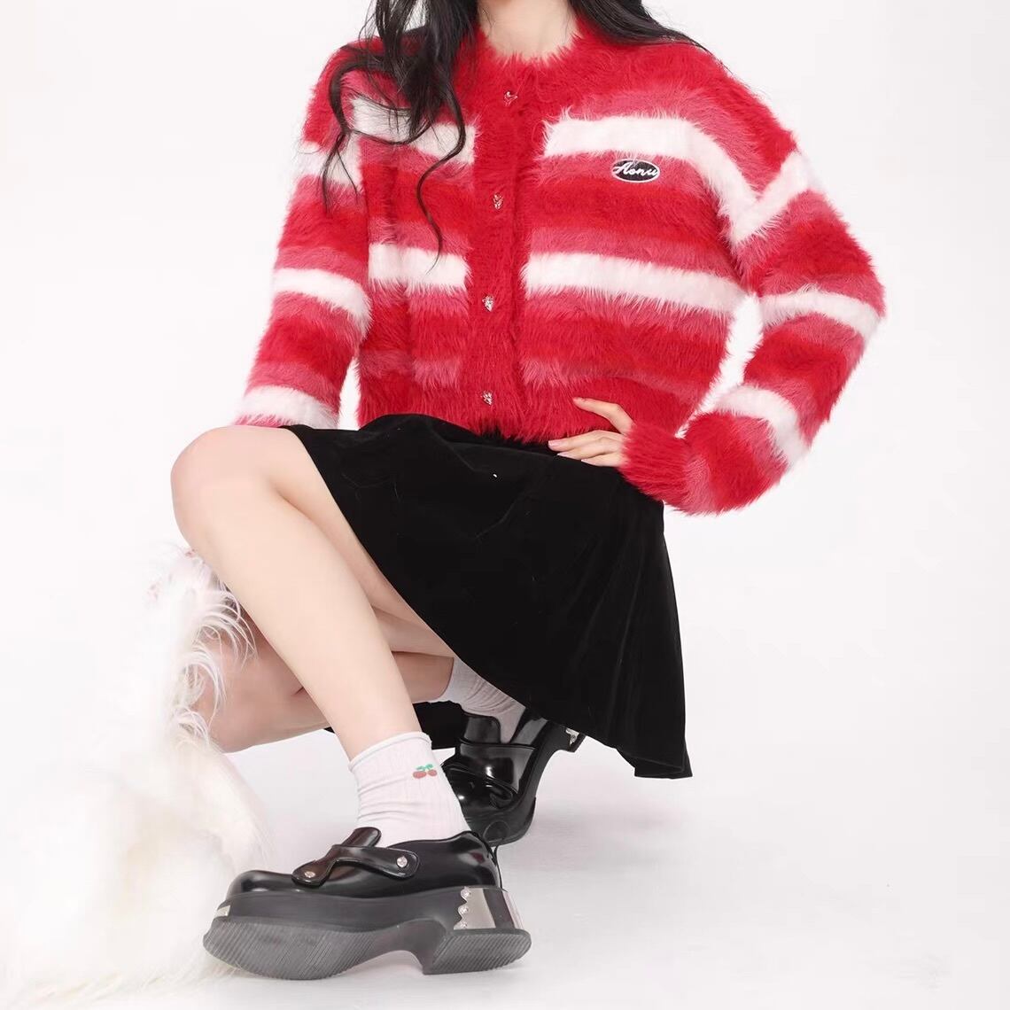 ・ガーリーに:画像のようにミニスカートや、ボリュームのあるプリーツスカートと合わせてとことん甘めに。